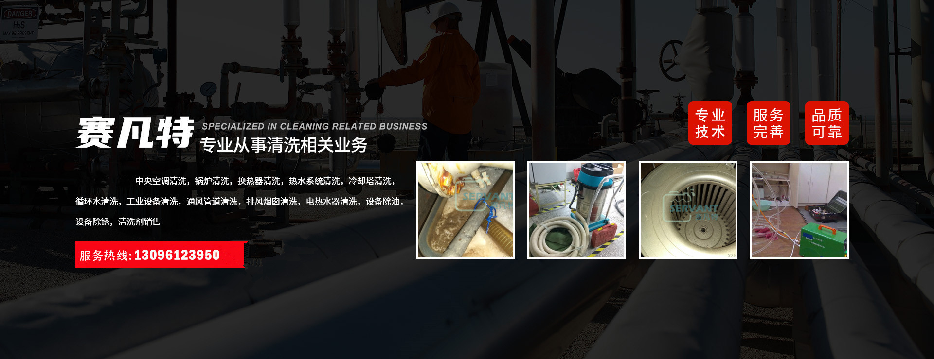 工業(yè)清洗工業(yè)制冷、供熱設(shè)備、各種儲罐、通水設(shè)備、鍋爐、循環(huán)水水處理與水質(zhì)管理,冷卻塔、風管、工業(yè)排風煙囪清洗消毒,凍庫制冷設(shè)備、風